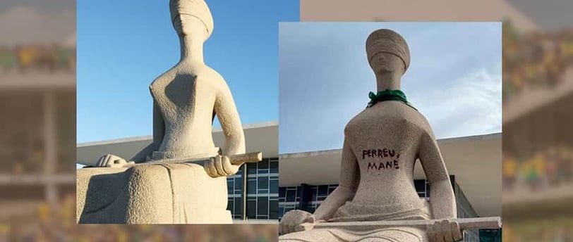 Débora Rodrigues enfrenta acusações que vão além da pichação. Ela responde pelos crimes de tentativa de golpe de Estado, dano qualificado ao patrimônio público e abolição violenta do Estado Democrático de Direito. Caso seja condenada em todas as instâncias, a pena pode chegar a 14 anos de prisão.